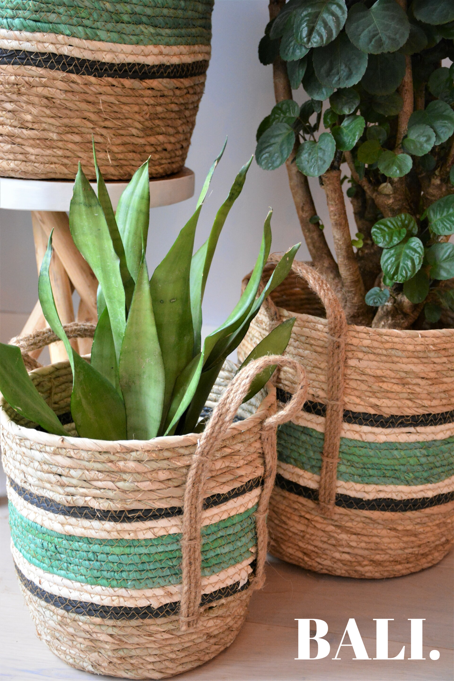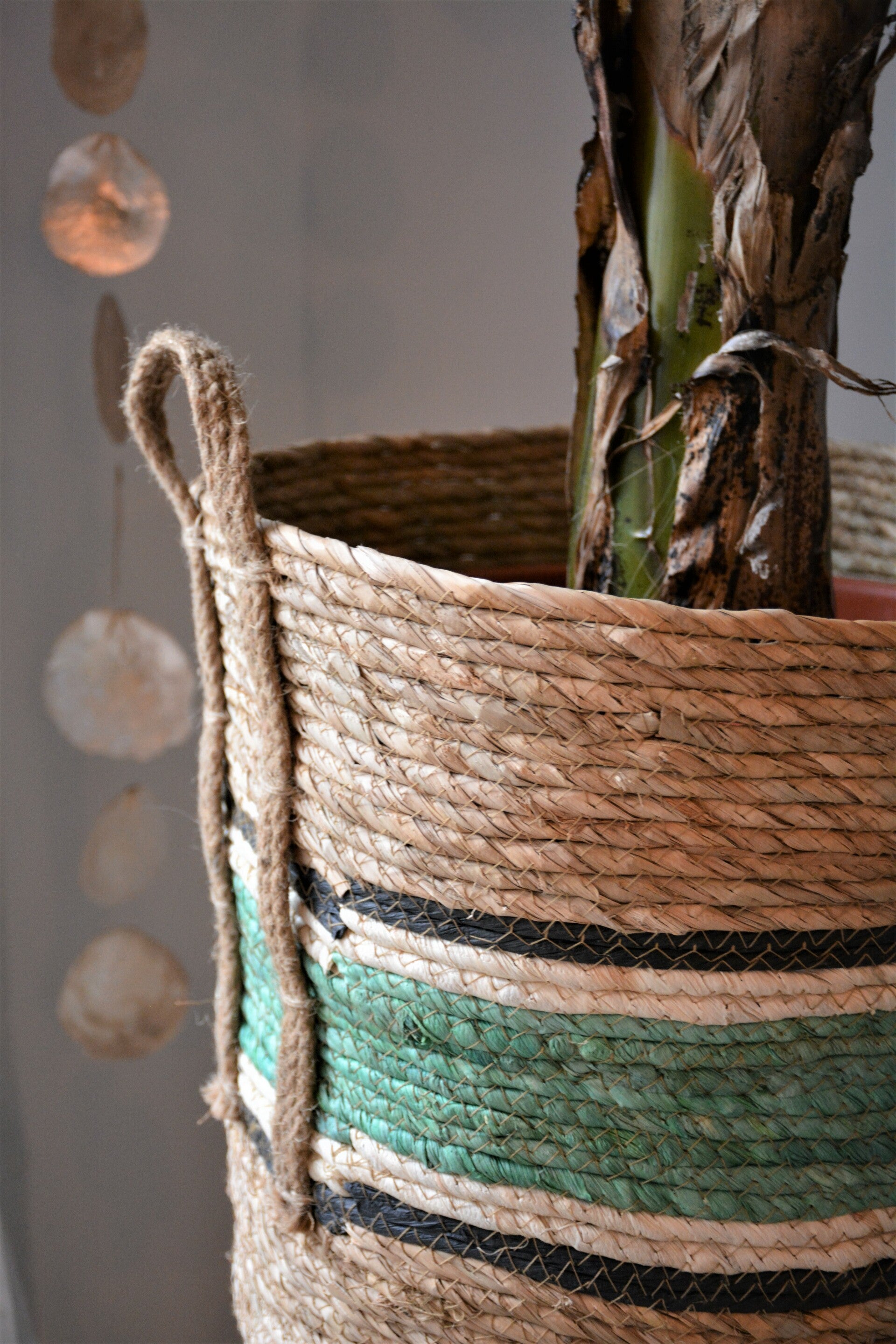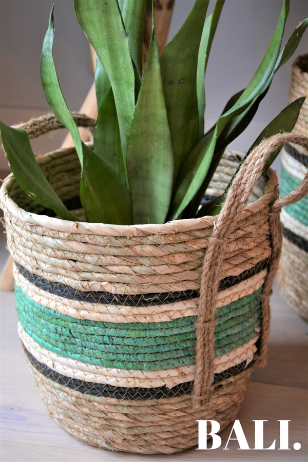 Rieten manden | Naturel/Groen