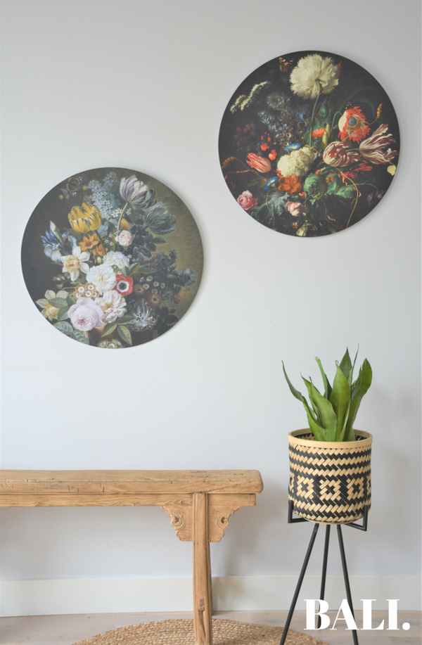 De Hidup Tenang is een klassieke muurcirkel. De mooie kleuren van de bloemen springen heel mooi uit de donkere achtergrond. Wij vinden het daarom écht een eyecatcher! Wat vind jij?